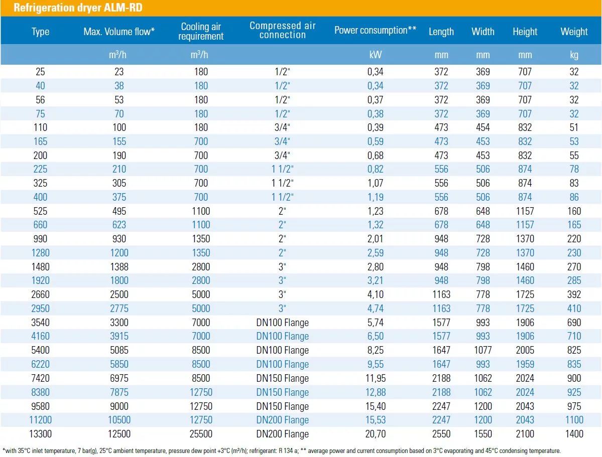 The use of clean, dry air is extremely important for all types of compressed air-powered applications. Therefore, do not compromise and opt for the ALM-RD refrigeration dryer series.